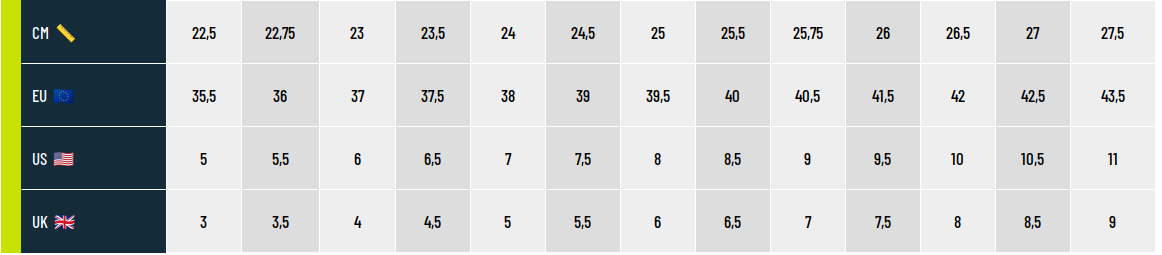 Dämpfung: Die Mittelsohle garantiert eine gute Dämpfung sowie eine effiziente Energierückgabe. Das stabile Design sorgt dafür, dass der Fuß während seiner Anstrengungen gut gestützt wird.